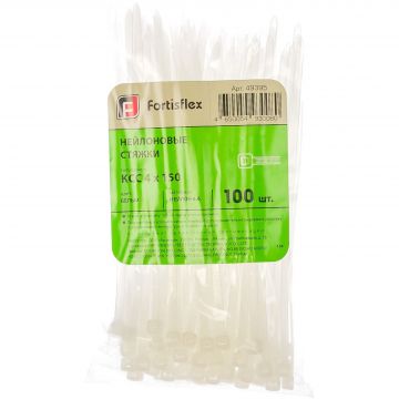 Кабельная стяжка стандартная FORTISFLEX (ФОРТИСФЛЕКС) КСС 4х150 мм белая 100 штук (49395)