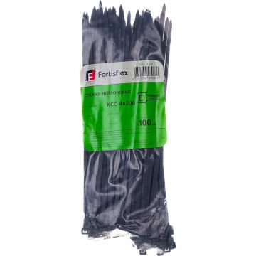 Кабельная стяжка стандартная FORTISFLEX (ФОРТИСФЛЕКС) КСС 4х200 мм черная 100 штук (49411)